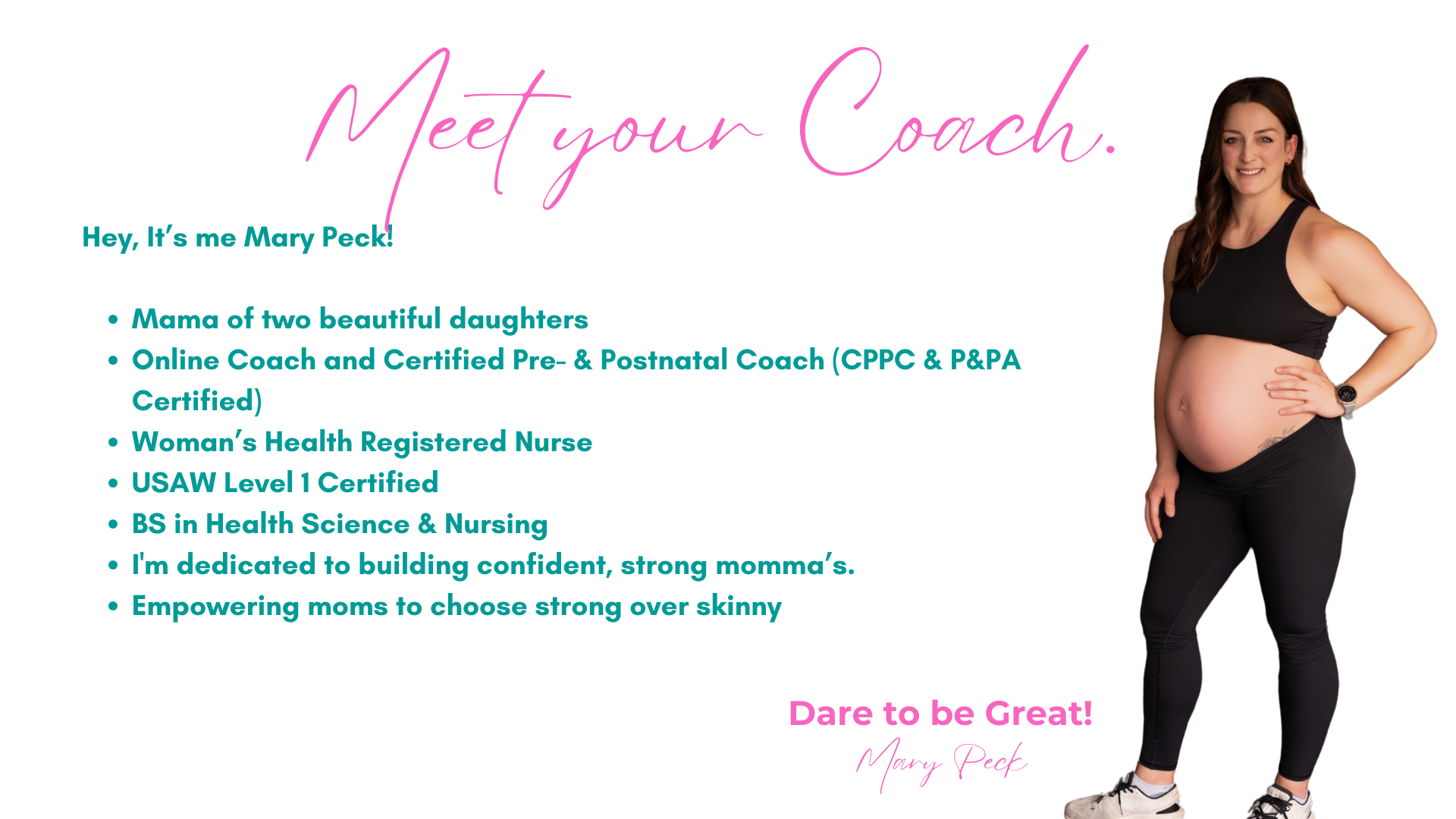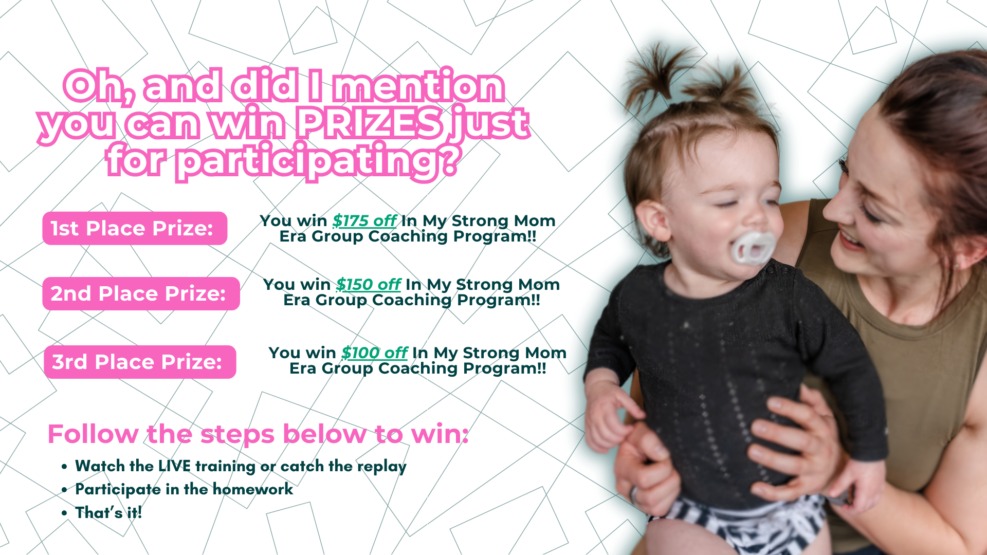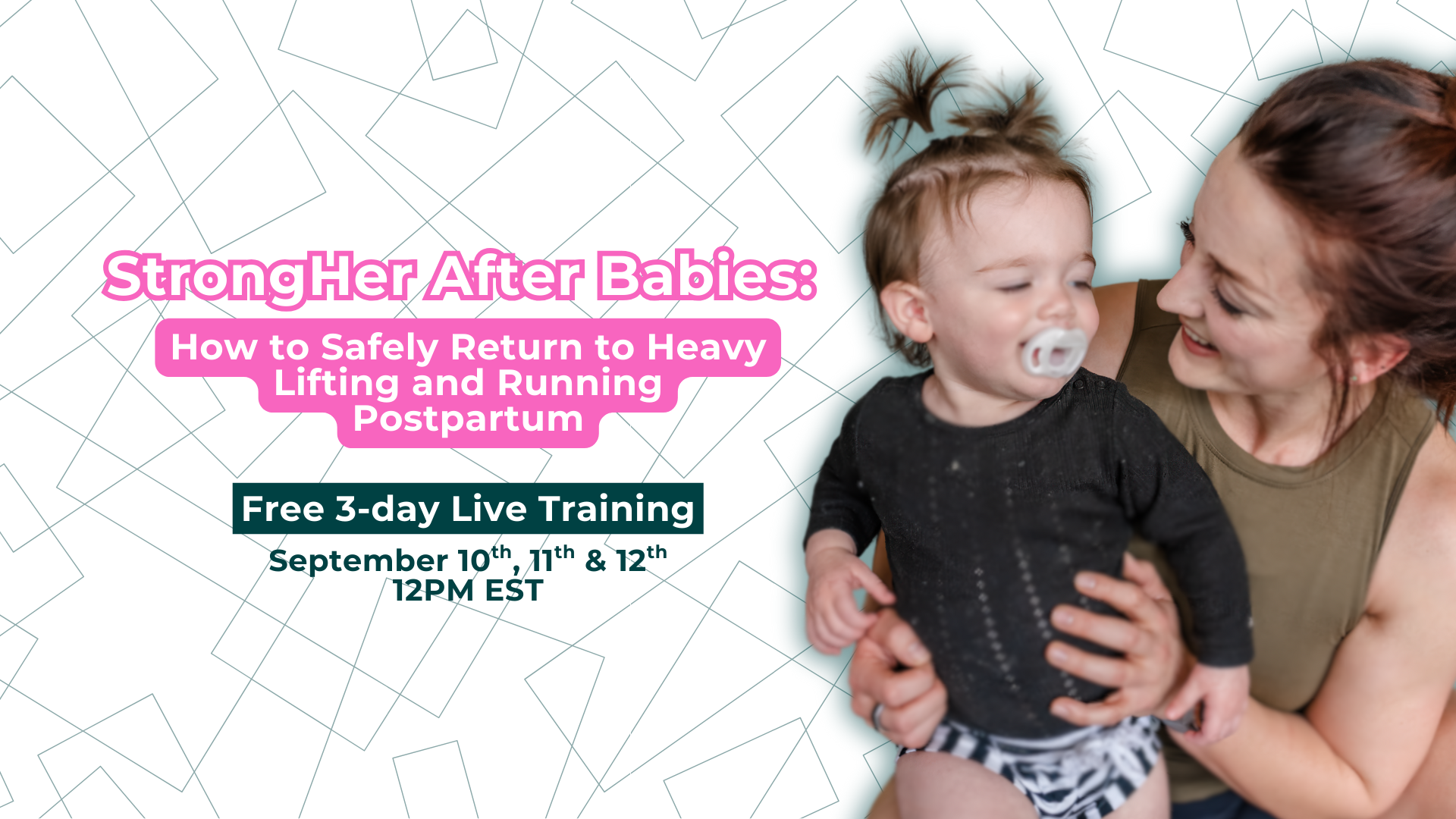 Sign up for the StrongHer after Baby: How to Safely Return to Heavy Lifting and Running Postpartum Free 3 Day Live Training now to start feeling like YOU again and confidently get back to pushing yourself in your workouts again without fear of pain, peeing, or an unhealed core.