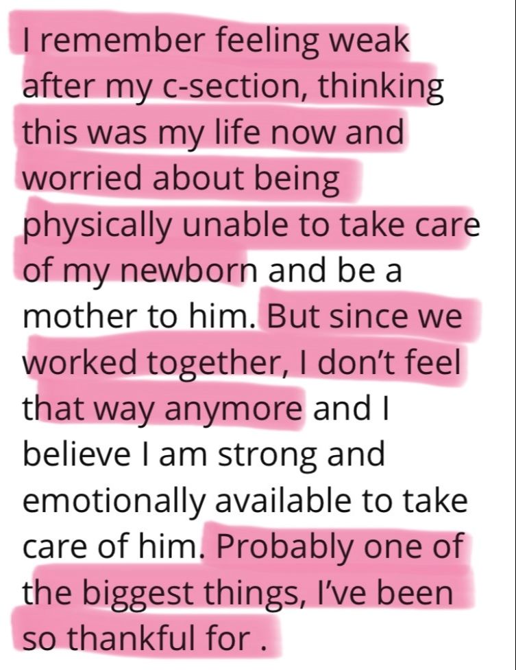 I felt stuck – either pushing too hard and tweaking my low back or constantly starting over because my workouts felt like another chore I couldn't realistically manage. The weight on the scale was hardly budging, my pre-baby strength felt distant, and the "all-or-nothing" voice in my head was just making things worse.