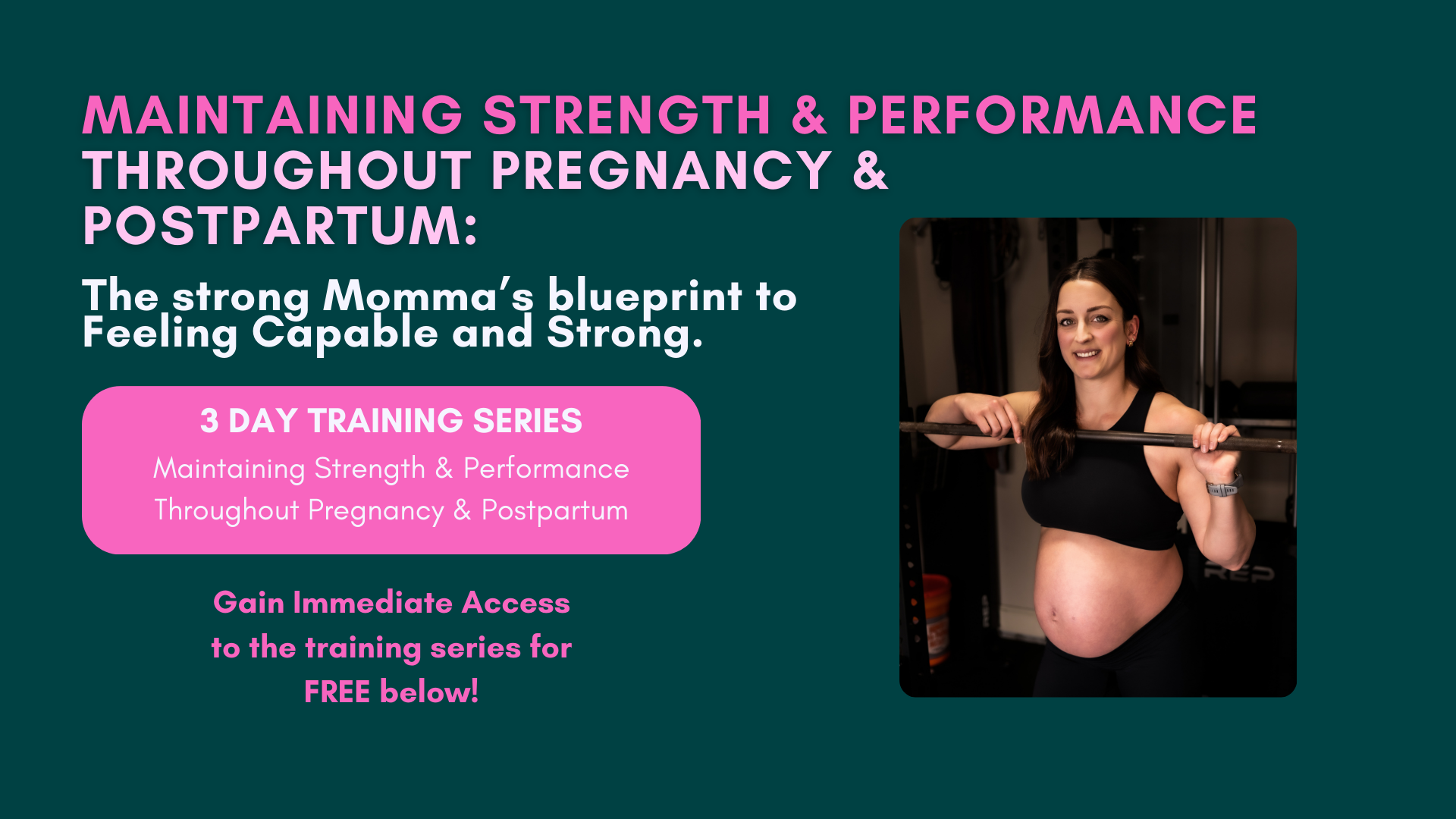 Sign up for the 'Maintaining Strength & Performance Throughout Pregnancy & Postpartum' Free Training Series now to start feeling like YOU again and confidently continue your journey with strength and performance!